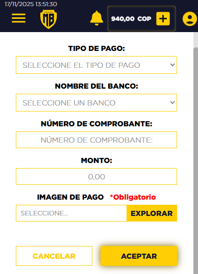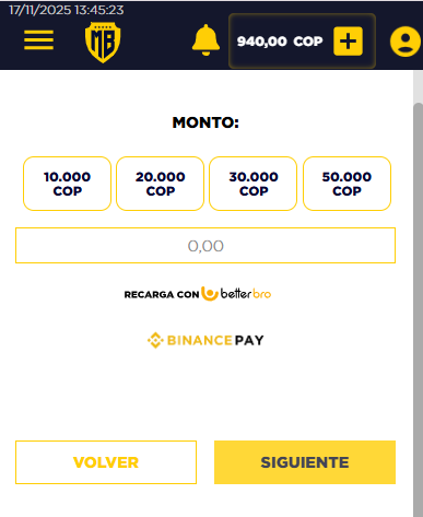 Máximo de Recarga: 5.000.000 COP