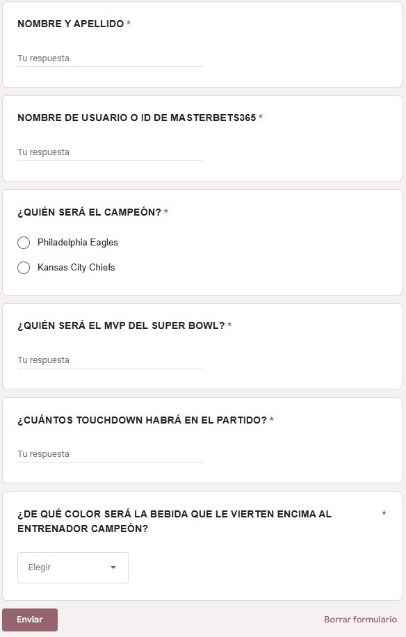 Una vez completada la información, haz clic en el botón “ENVIAR”, y ya estás participando en la promoción de apuesta por la final del Super Bowl LIX por los 100 dólares.
