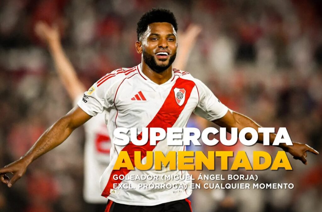 ¿En qué consiste? Es una jugada especial en la que te ofrecemos la posibilidad de lograr una mejor ganancia. Partiendo que River Plate se perfila como el gran favorito en este partido, en Masterbets365 queremos ofrecerte la oportunidad de apostar y ganar jugando a Miguel Borja como GOLEADOR en CUALQUIER MOMENTO en su compromiso ante Colo Colo, en este decisivo cruce en Copa Libertadores. La cuota de esta jugada aumentó de –134 a +100. ¡No dejes pasar esta oportunidad para jugar y ganar con nosotros!